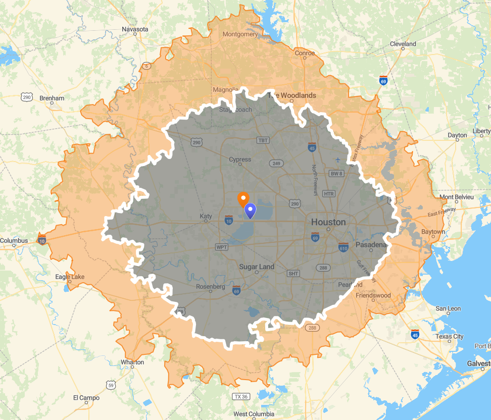 Standard Service Area Cities: Houston, Katy, Aldine, Bridgeland, Brookshire, Cinco Ranch, Cypress, Jersey Village, Missouri City, Richmond, Rosenberg, Sealy, Sugar Land, Tomball, Waller